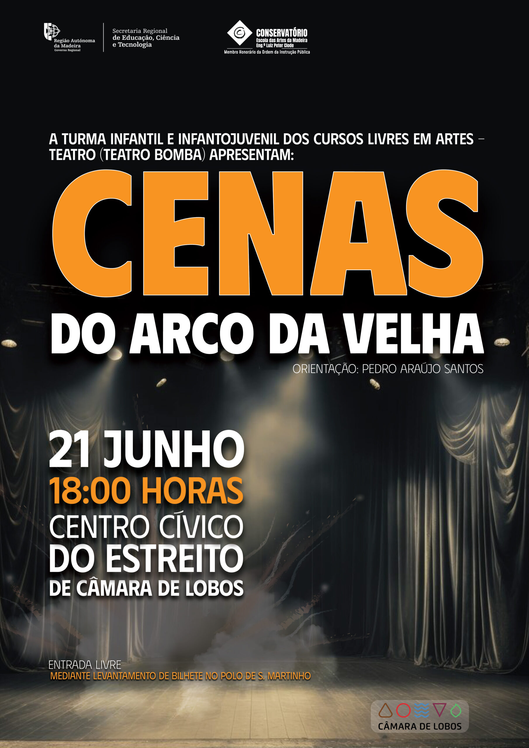 O Conservatório – Escola das Artes da Madeira, Eng.º Luiz Peter Clode, irá levar a palco a peça “Cenas do Arco da Velha”, interpretada pelos alunos de Teatro dos Cursos Livres em Artes, turmas Infantil e Infantojuvenil B. O espetáculo terá lugar no dia 21 de junho, às 18h, e irá decorrer no Centro Cívico do Estreito de Câmara de Lobos. Esta iniciativa oferece à comunidade local mais uma ocasião para apreciar o talento e o empenho dos jovens alunos desta oferta formativa do Conservatório, numa produção que promete envolver o público pela sua criatividade e originalidade. A orientação é do professor Pedro Araújo Santos. A entrada é livre, e os bilhetes podem ser levantados previamente no Polo de São Martinho.