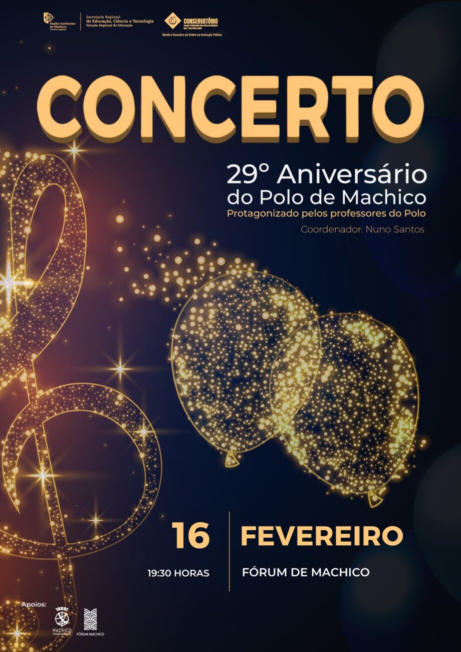 O concerto comemorativo do 29.º aniversário do Polo de Machico pretende transmitir um pouco da paixão que todos os que lá trabalham, docentes e não docentes, têm por esta escola e pelos milhares de alunos que, ao longo dos anos, levaram consigo um pouco dessa paixão nos seus corações, plantando assim a semente das artes por toda a comunidade educativa. Este espetáculo contará com 10 temas musicais, de diferentes estilos e compositores, protagonizados por cerca de 15 docentes, todos com uma ligação à instituição, presente ou passada. O último tema será protagonizado por todos estes artistas, em simultâneo. A entrada é livre.