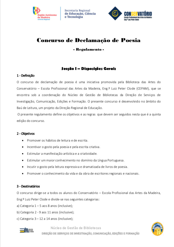 O Conservatório – Escola Profissional das Artes da Madeira, Eng.º Luiz Peter Clode, promove a quinta edição do Concurso de Declamação de Poesia, desta vez integrado nas comemorações dos 75 anos do Conservatório.