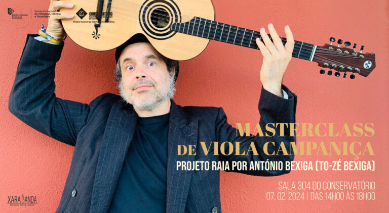 No dia 7 de fevereiro decorrerá também, na sede do Conservatório, uma masterclass de viola campaniça, protagonizada pelo profissional da área dos cordofones portugueses António Bexiga (To-Zé Bexiga), entre as 14h00 e as 18h00. O artista estará na região entre os dias 2 e 6 para apresentar o seu projeto ‘Raia’ e integrar o Projeto aCorde 2024, numa parceria com a Associação Musical e Cultural Xarabanda.