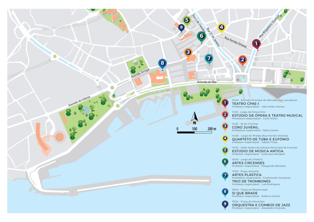 As 10 apresentações agendadas para as 10 horas de duração desta maratona, entre as 10h00 e as 20h00 de sábado, irão decorrer em 9 espaços públicos e num percurso orientado entre o Mercado dos Lavradores e o Largo do Município.