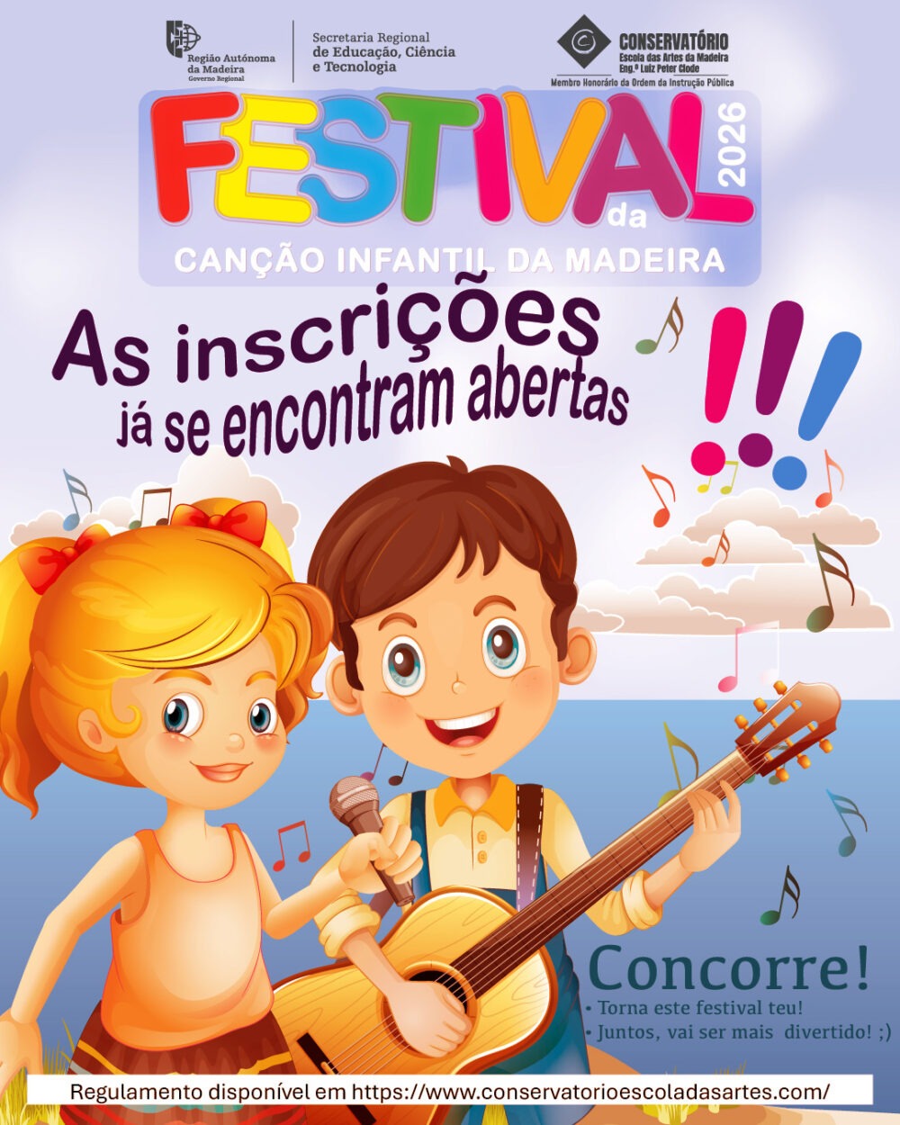 O Conservatório – Escola das Artes da Madeira, Eng. Luiz Peter Clode, informa que já foi publicado o regulamento do 45.º Festival da Canção Infantil da Madeira, que se realizará no dia 18 de abril de 2026, em local a anunciar.