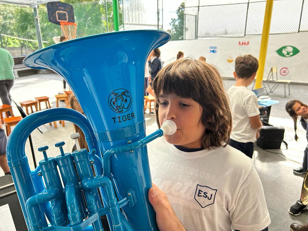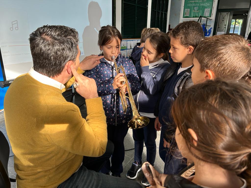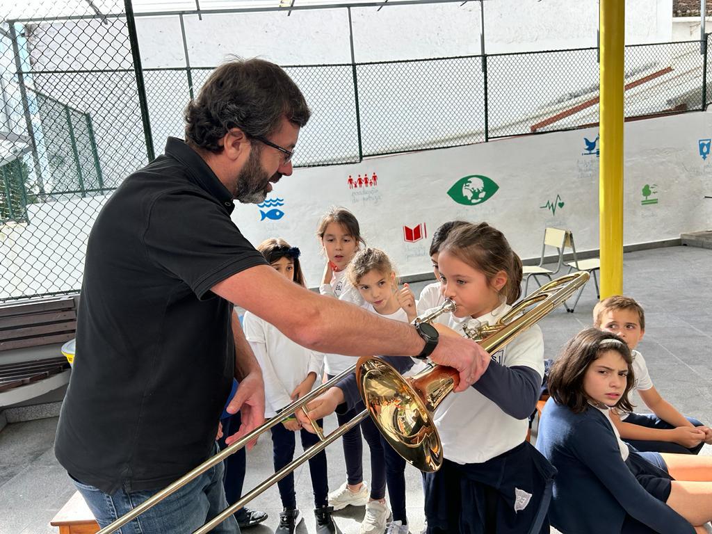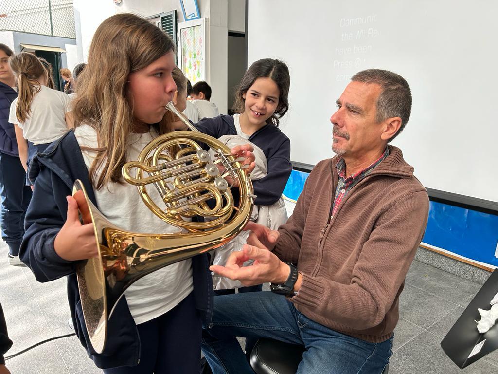 Decorreu hoje, no Externato São João, mais uma sessão do projeto ‘À Descoberta da Música’, promovido pelo Conservatório e sob a coordenação do professor Paulo Anselmo, que contou com a participação do Quinteto de Metais, composto pelos professores Luís Calhanas, Peter Vig, Fabien Filipe, Pedro Pinto e Paulo Barros.