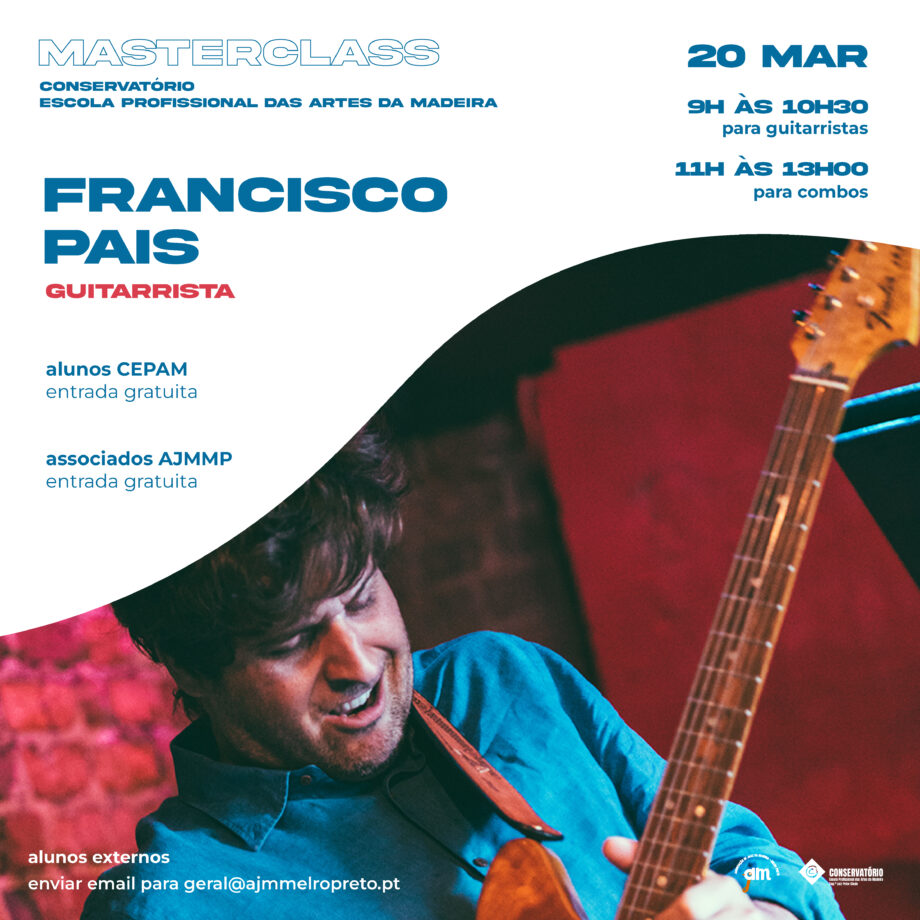 No próximo dia 20 de março, irá decorrer uma masterclass com o guitarrista Francisco Pais, na sede do Conservatório. Esta masterclass terá uma primeira parte dedicada à guitarra e uma segunda parte dedicada a prática de conjunto (combos).