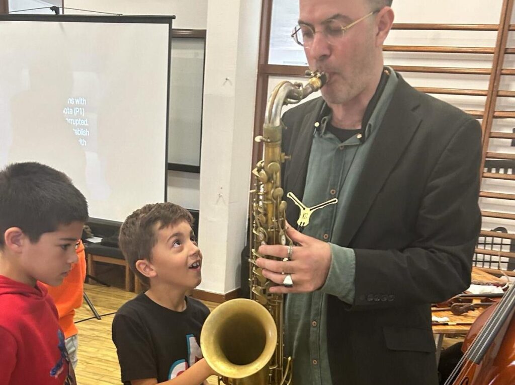Decorreu na passada sexta-feira, dia 1 de março, na EB1/PE da Ladeira e Lamaceiros, mais uma sessão do projeto ‘À Descoberta da Música’, promovido pelo Conservatório e sob a coordenação do professor Paulo Anselmo, que contou com a participação de um Trio de Jazz, composto pelos professores Francisco Andrade, Luís Freitas e Jorge Maggiore.