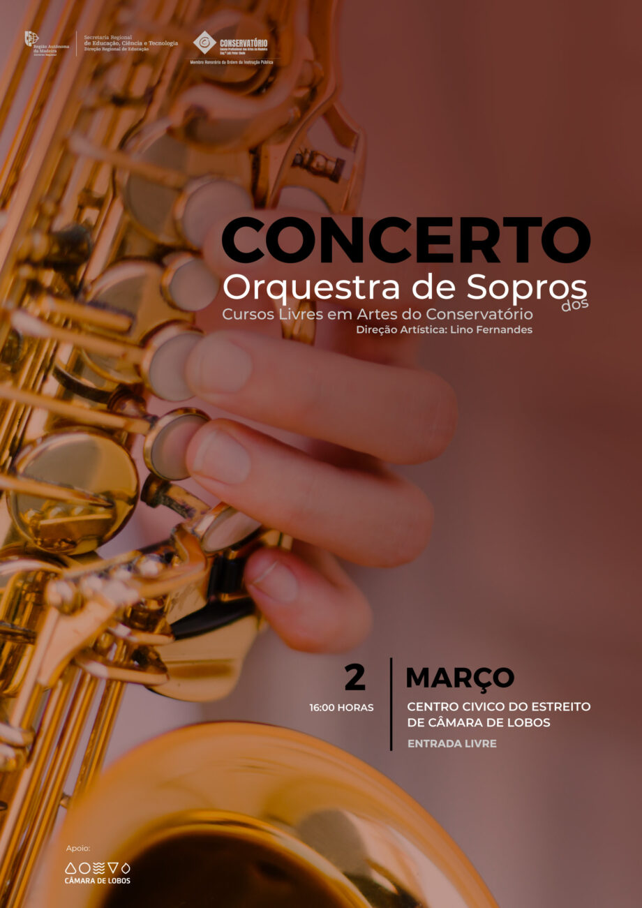 Amanhã, dia 2 de março, pelas 16h00, a Orquestra de Sopros dos Cursos Livres em Artes do Conservatório realizará um concerto no Centro Cívico do Estreito de Câmara de Lobos, com direção artística de Lino Fernandes. A entrada é gratuita.