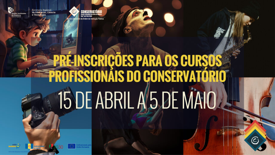 O Conservatório informa que estão abertas as pré-inscrições para os cursos profissionais do próximo ano letivo. A instituição, conhecida pela sua abrangência na oferta educativa artística, não se limita ao ensino da música, disponibilizando também cursos nas áreas do teatro, dança contemporânea, animação 2D/3D e multimédia.